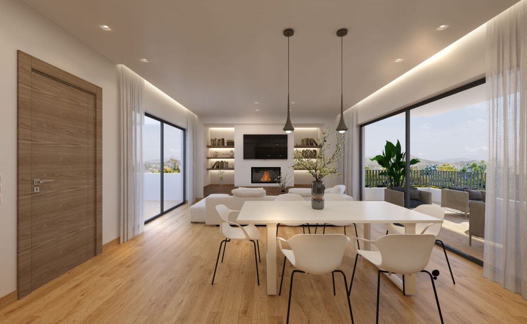 • Μεγάλος χώρος καθιστικού με τζάκι, τραπεζαρία και κουζίνα open plan, 3 υπνοδωμάτια( το 1 master) 2 λουτρά, WC, walk-in ντουλάπες